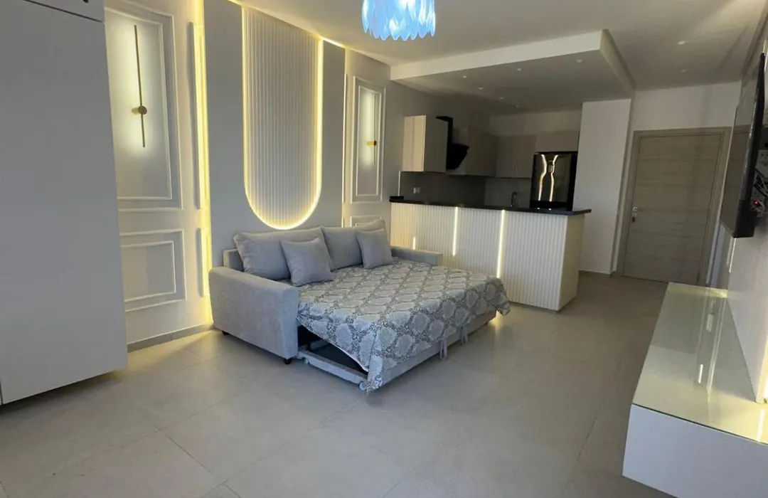 Tento apartmán o rozloze 70 m² se nachází 10 km od letiště Mezinarodni letiste Monastir Habib Bourguiba. Hosté mohou relaxovat u bazénu jako plavecký bazén.